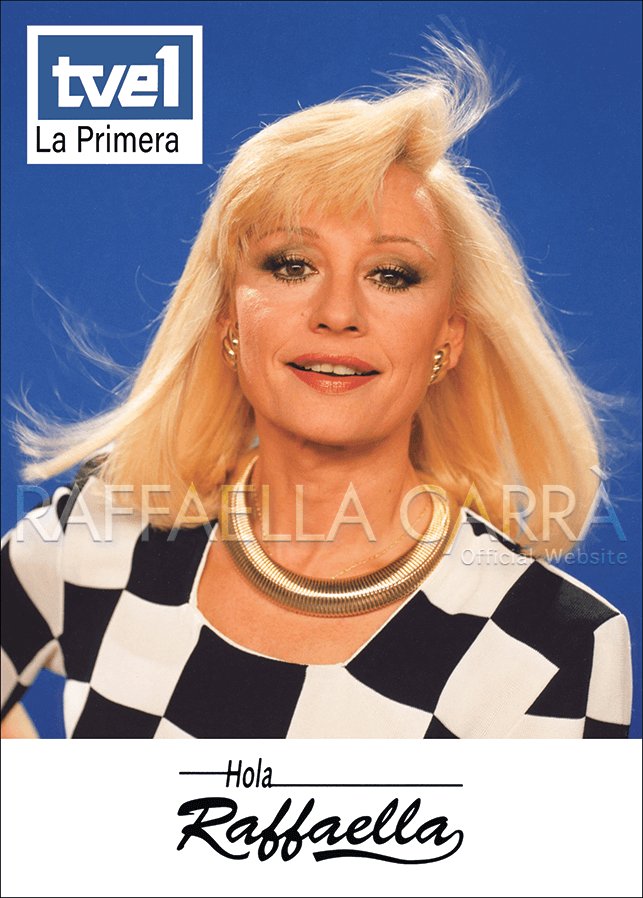 Fotografia promozionale distribuita come omaggio nella cartella stampa di presentazione del programma televisivo di TVE, “Hola Raffaella” • Spagna, 1992 •